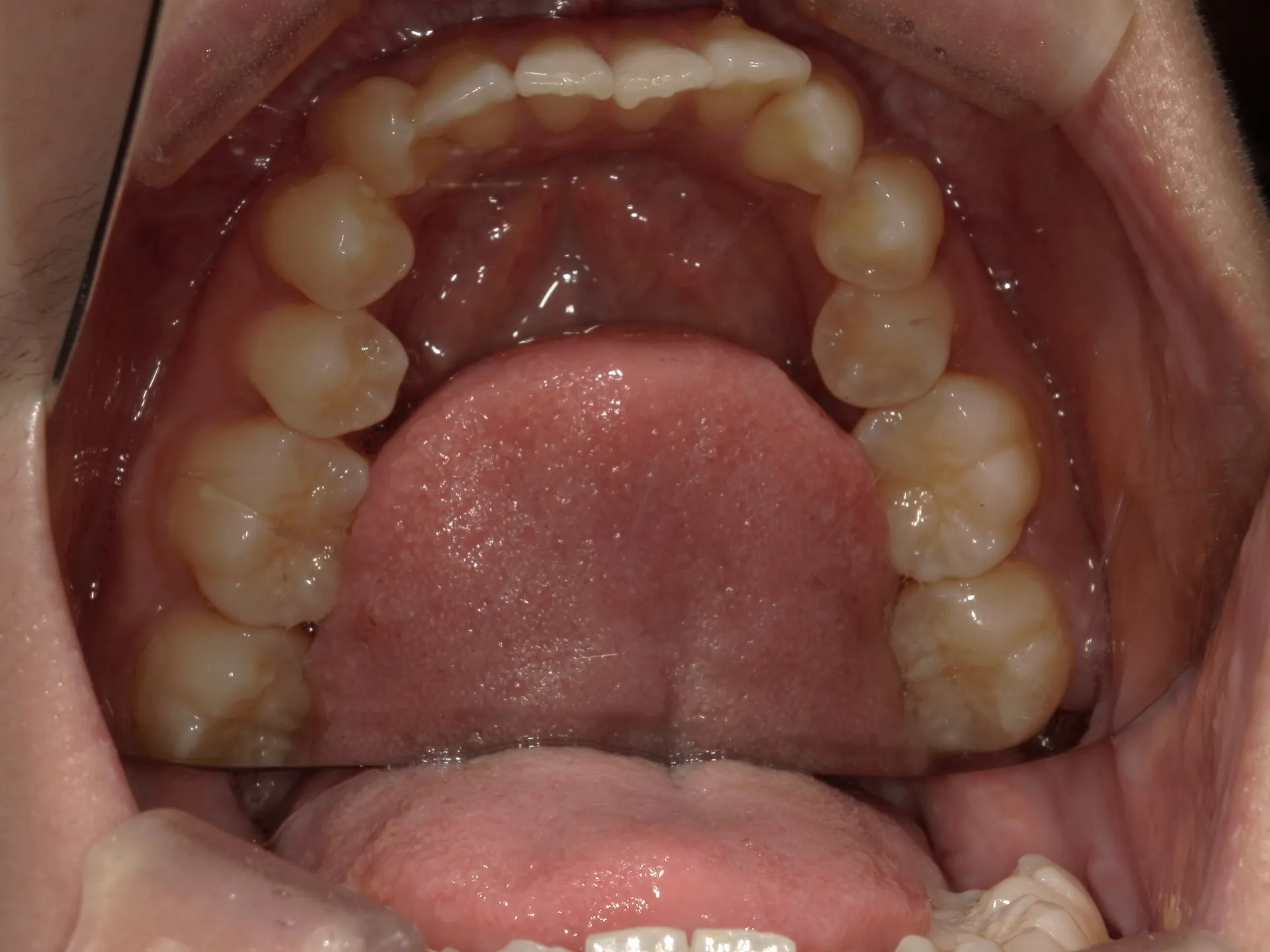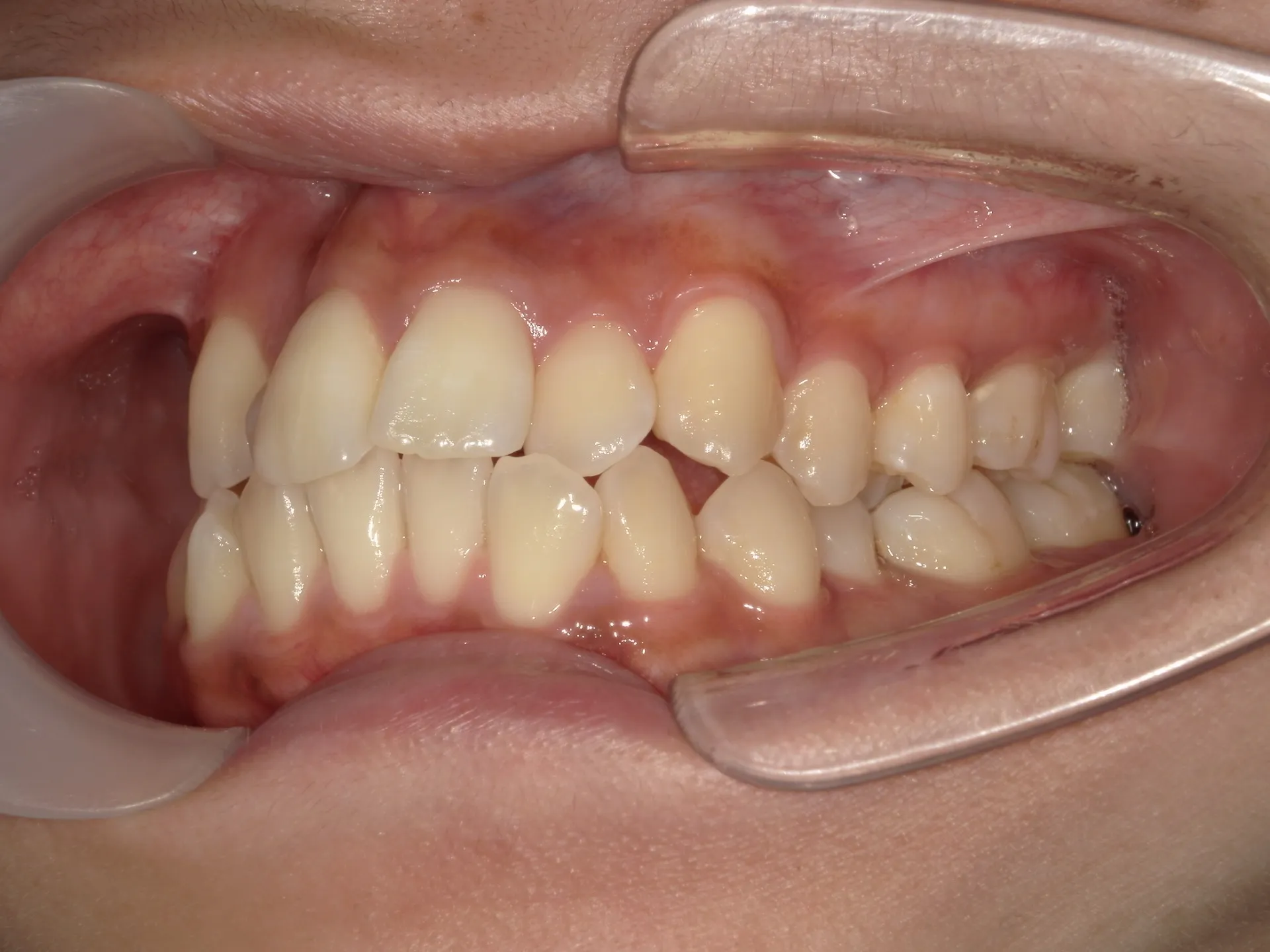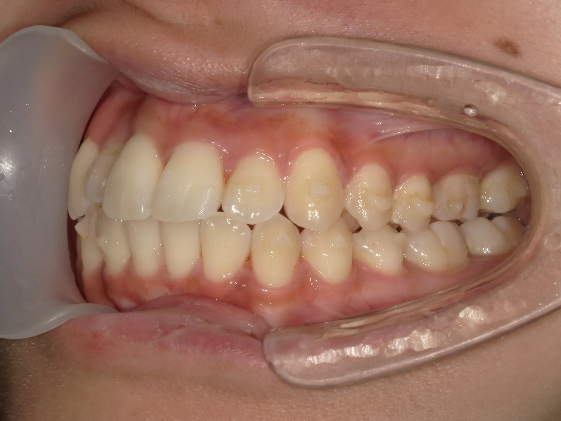 よくある難しい動きとして上の歯の前から2番目の歯を後ろから前へ動かしたり下へ下げる動きです。