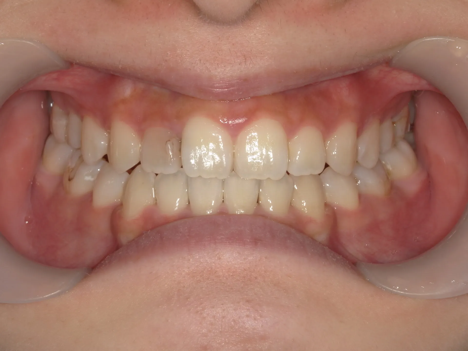 正面からみると下の歯が上の歯よりも外側に出ていることが分かります。