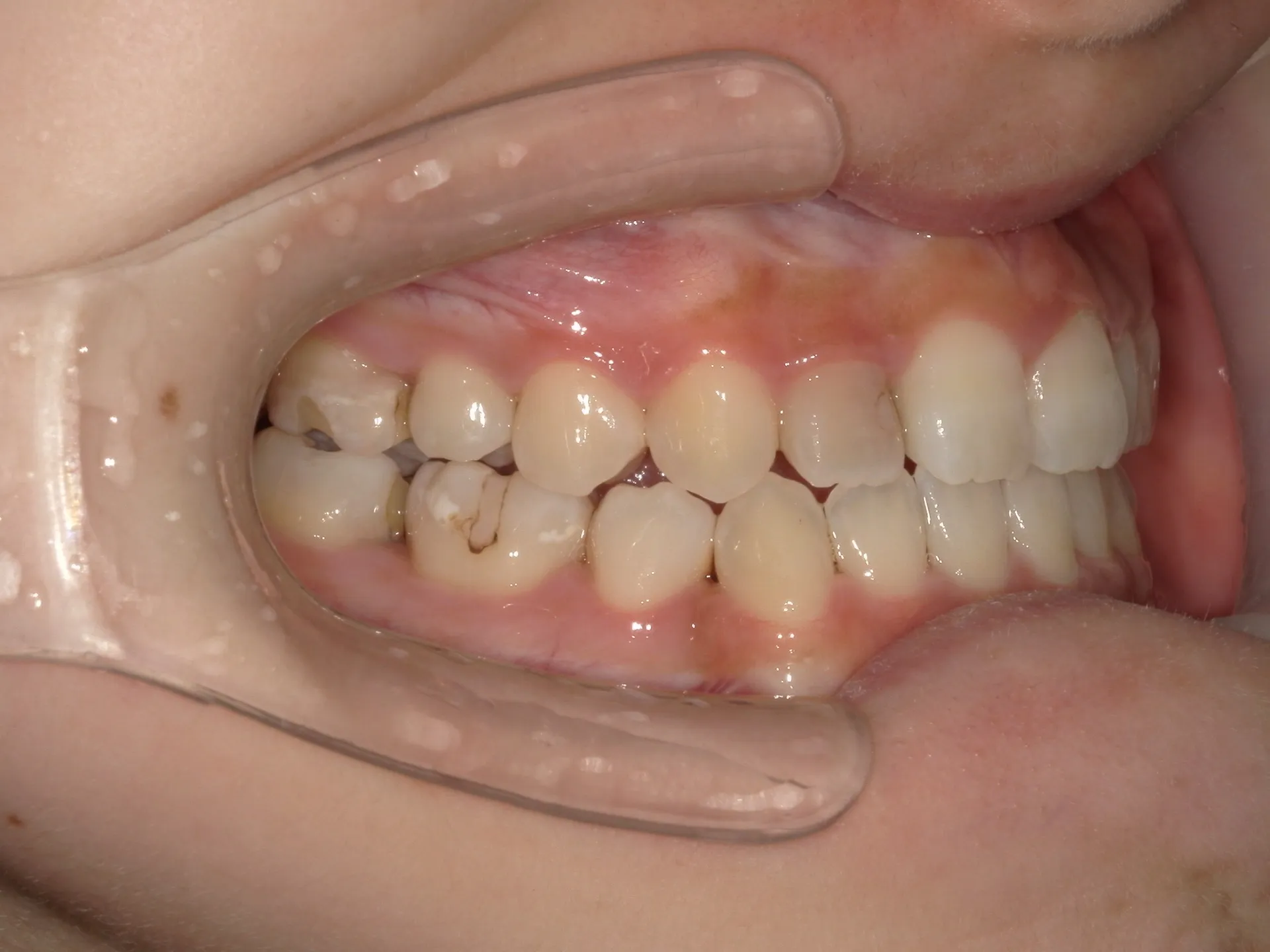 当院で診始めた段階で骨格的な反対咬合であると診断しました。