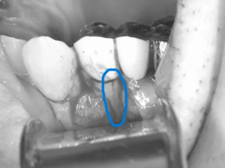 今回お見せしている写真では歯茎を切開し開いて炎症の場所を直視している状態です。