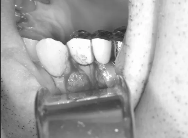 ここの亀裂に細菌が侵入し、周りに炎症が起こることで骨が吸収し歯茎が腫れてしまっています。
